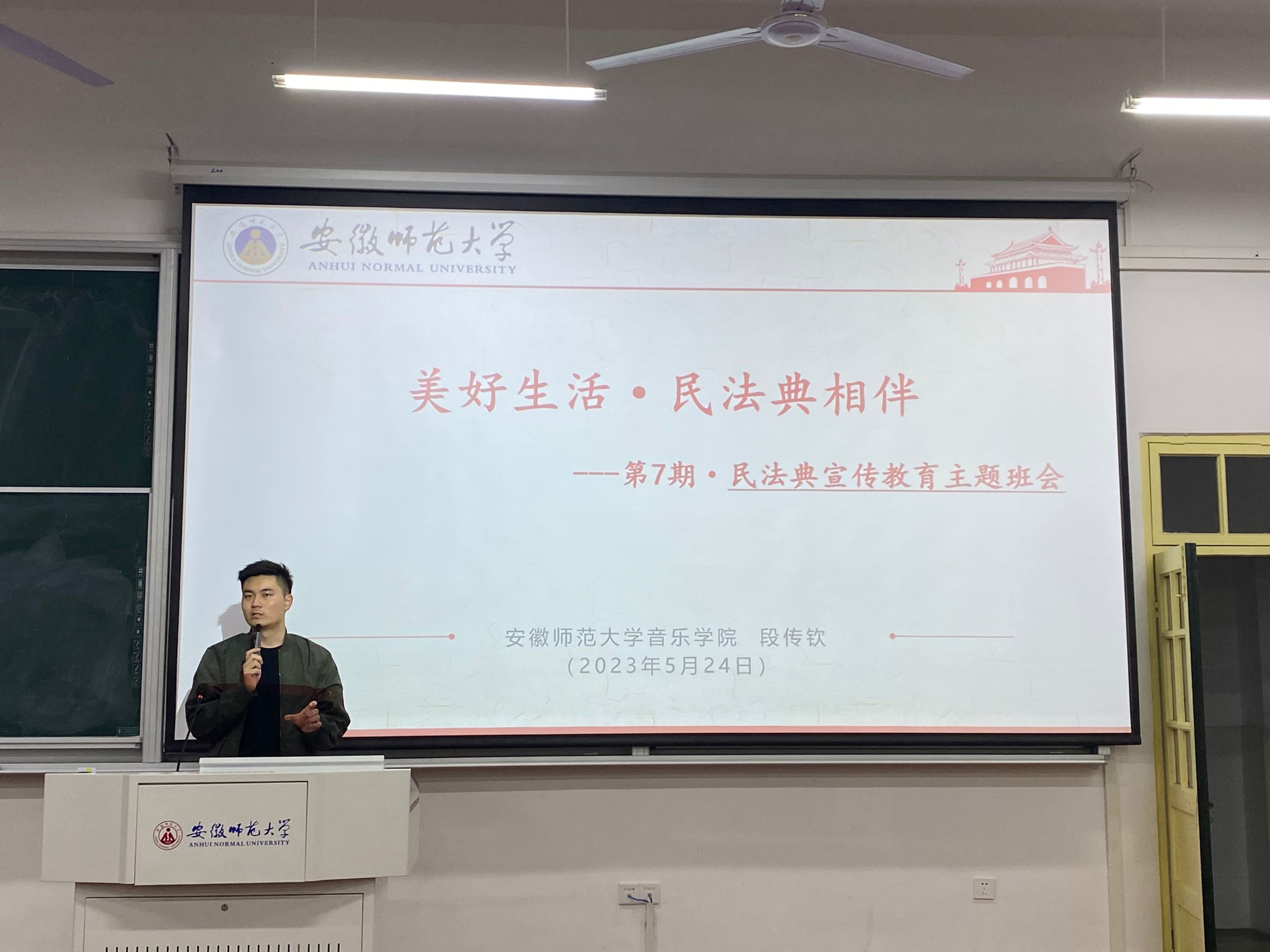 (图文/何孝国 段传钦)为进一步丰富老员工的法律知识,提高老员工的法律意识和法治思维。5月24日晚,2022级本科生组织召开民法典宣传教育主题班会,会议由段传钦老师主持。