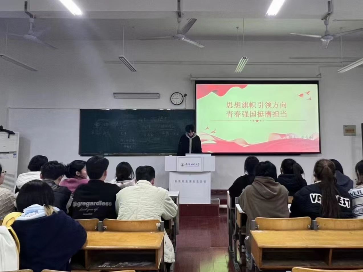 本网讯(22级音乐学 王兴宇) 12月7日晚,2022级音乐学三班开展了“思想旗帜引领方向,青春强国挺膺担当”主题团日活动,活动由班级团支书秦业桐主持。