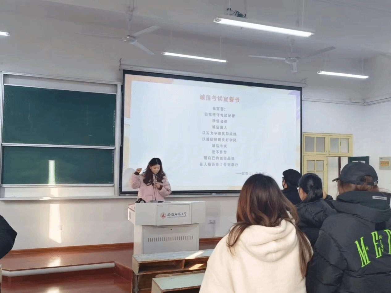 随着期末考试的来临,同学们都进入了紧张有序的备考阶段。虞睿介绍了有关期末考试的复习指南和注意事项。提醒同学们充分把握复习时间,认真准备好每一门功课,以诚信的态度对待每一场考试,以实力争取优异成绩,以实际行动彰显诚信品质,弘扬诚信之风。
