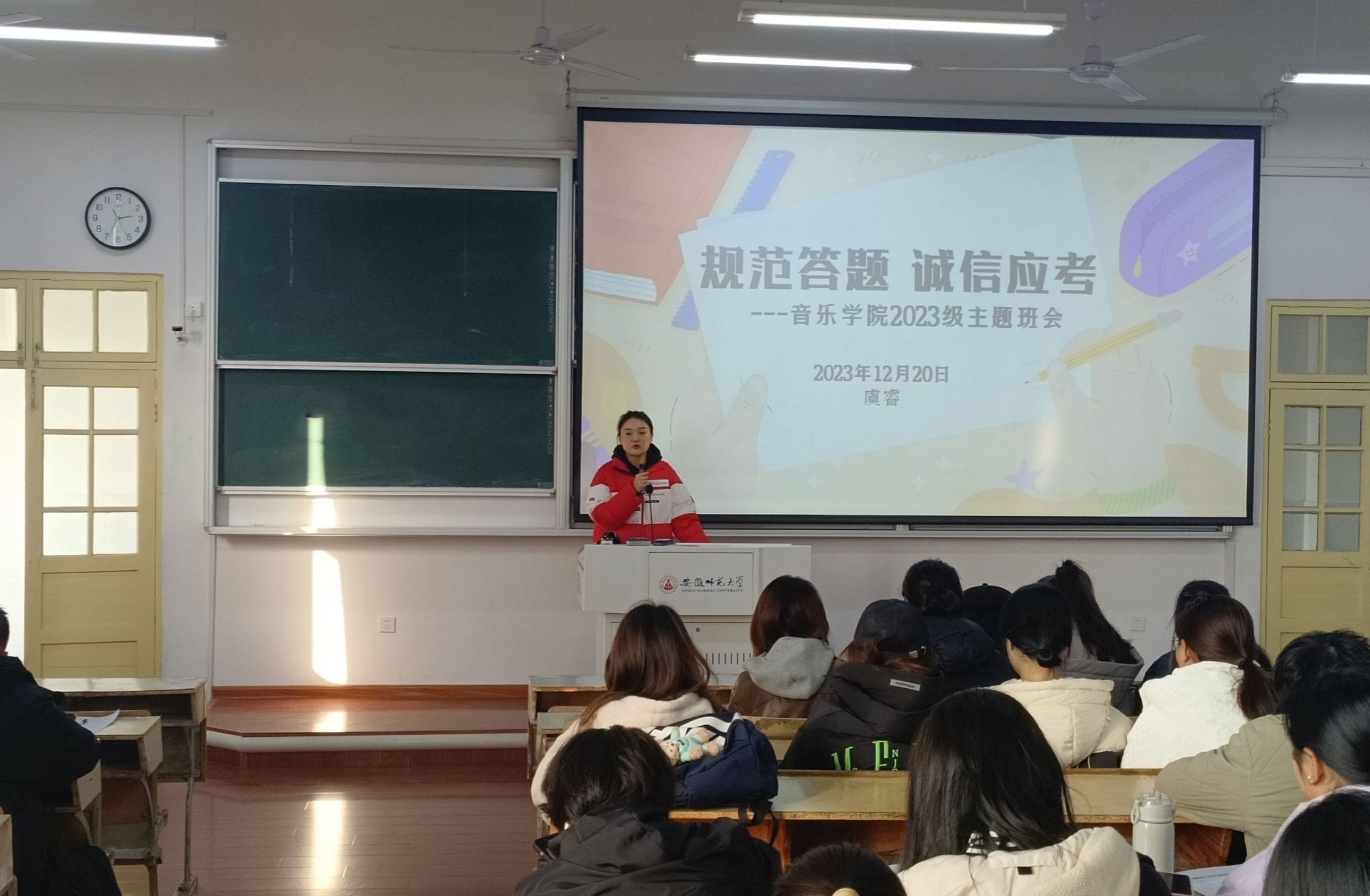 本网讯(23音乐学 周利)为培养诚信意识,严明考风考纪,23级TapTap点点于12月20日下午在教学楼1401开展“诚信考试”主题班会,班会由辅导员虞睿老师主持。