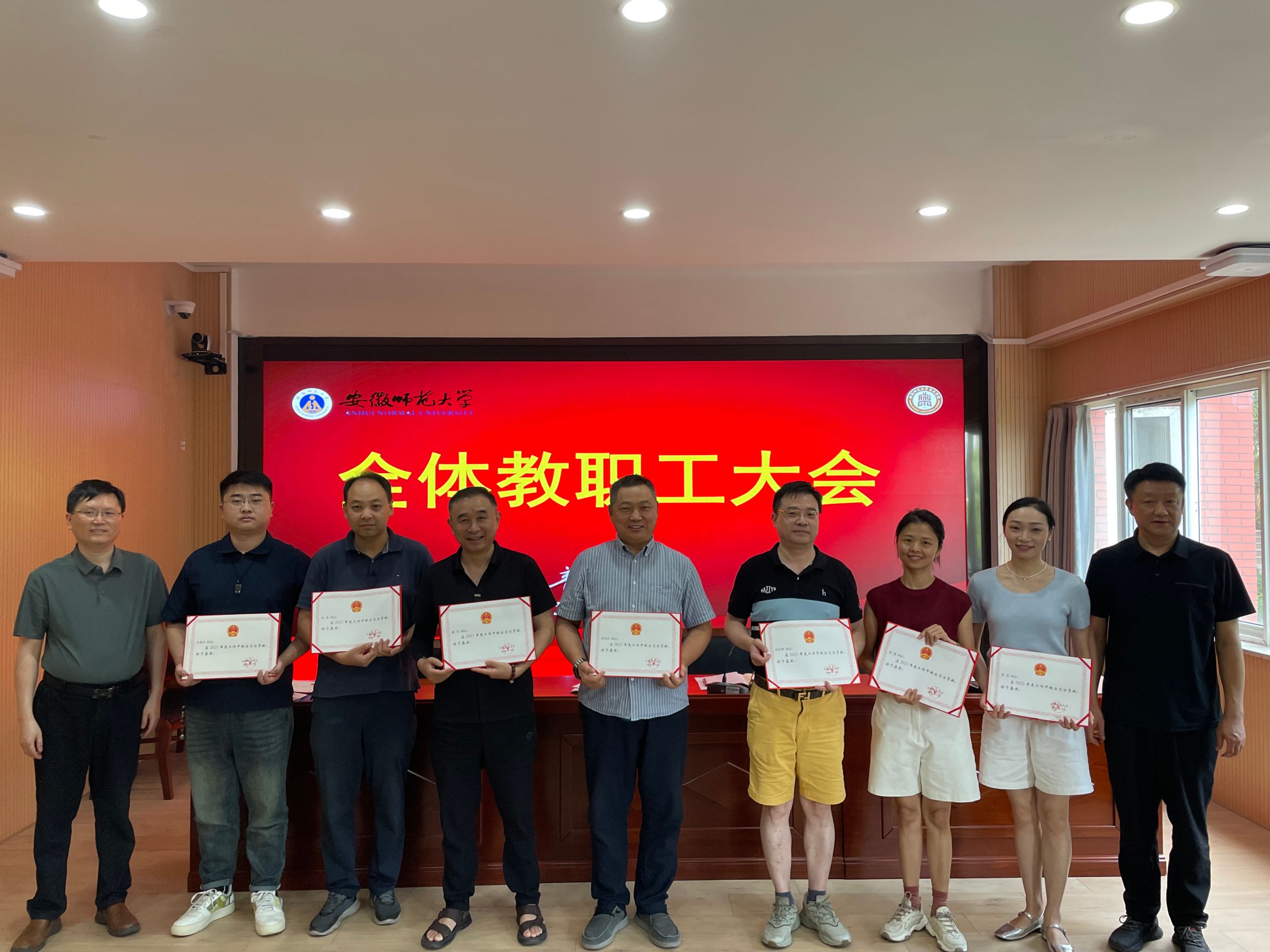 会上,奚泰来和汪海元分别为2023年获得嘉奖的老师颁发了证书。