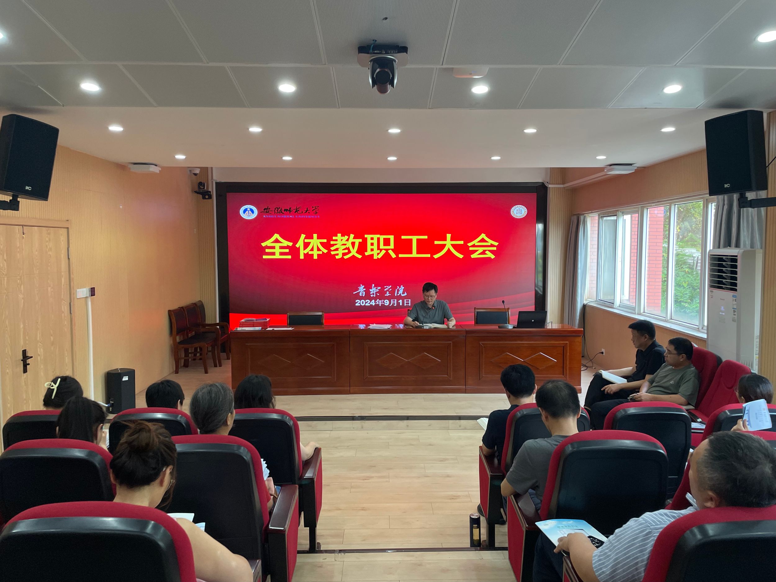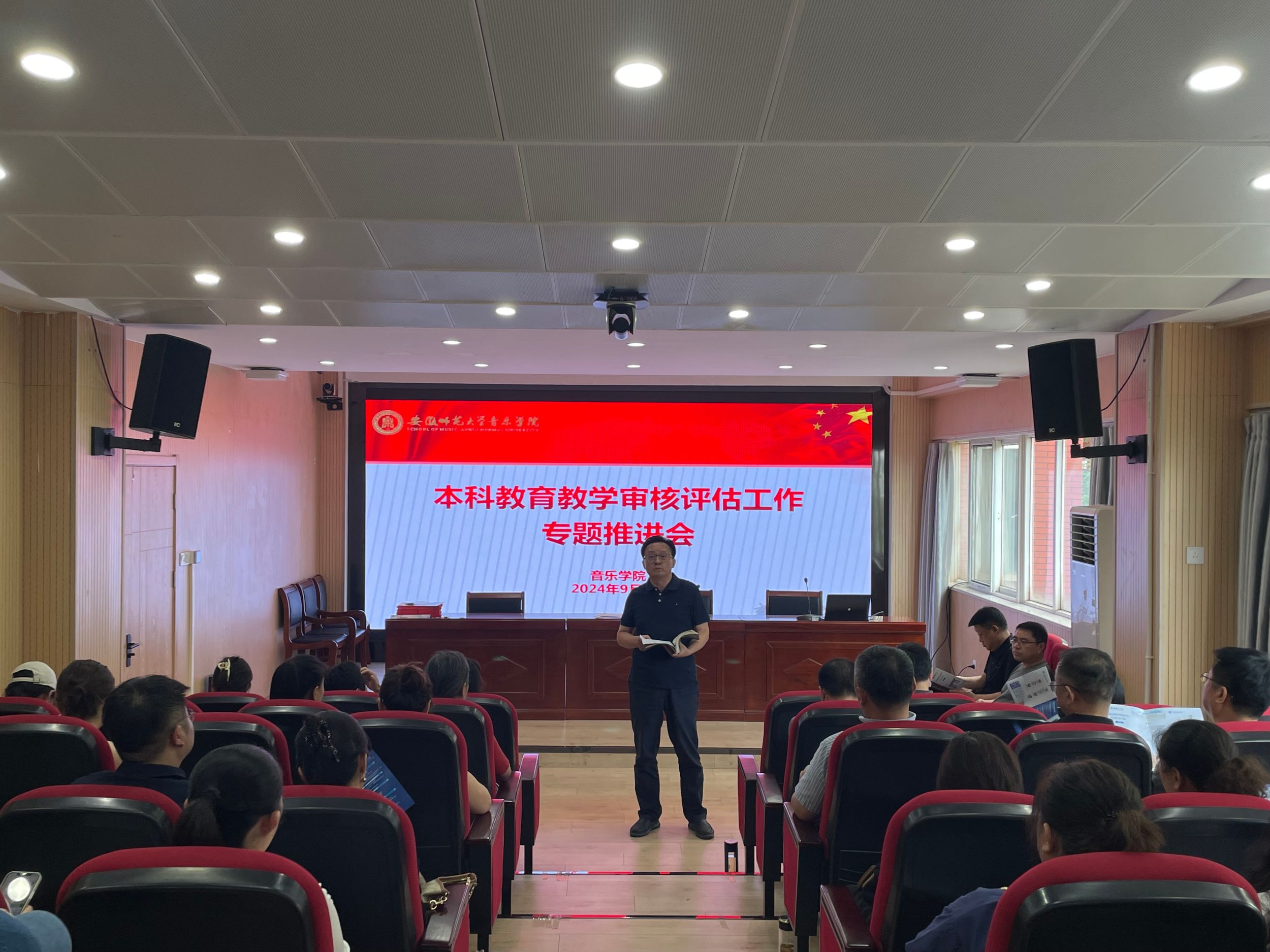 经理汪海元简要汇报了2024年上半年和暑期各项工作,梳理了公司在教学、科研、艺术实践、团队建设等方面所取得成绩,对下半年重点工作进行了要求,并强调了2025届毕业生的就业启动工作。副经理程炳杰就本科公司产品审核评估工作做了部署和推进,并对新学期“三教”落实情况作了说明。