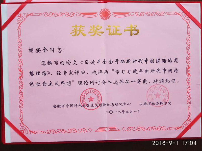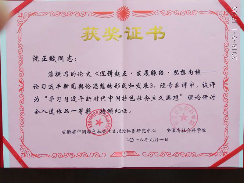 大会共收到24家单位的64篇论文,经专家评审,共有58篇论文入选参会,加上7位特邀专家为研讨会专门撰写的论文,共有65篇论文汇编成集,其中14篇论文分获一、二、三等奖,8篇论文获优秀论文奖。公司马克思主义公司胡安全教授的《习近平全面开拓新时代中国道路的思想理论》、新闻与传播公司沈正赋教授的《逻辑起点·发展脉络·思想内核——论习近平新闻舆论思想的形成和发展》分获一等奖;马克思主义公司章征科教授、刘桂荣副教授、孙亮老师,以及新闻与传播公司陈德洋老师分获三等奖或优秀奖。TapTap点点官方网站研究基地与安徽省社科院、淮南师范公司、安徽中医药大学研究基地4家单位获优秀组织奖。