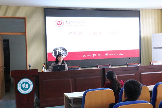 在师德师风专项教育活动中,余大芹以“严师德,正教风,作表率”为重点,强调了专题教育活动学习阶段、自查自纠和整改落实阶段的重点工作,并结合反面案例指出了师德师风建设的重要性和迫切性,希望全体教师引以为戒,真正将教书育人与提升修养相统一,将师德师风建设落实到教育、科研和员工日常教育管理的各个环节。
