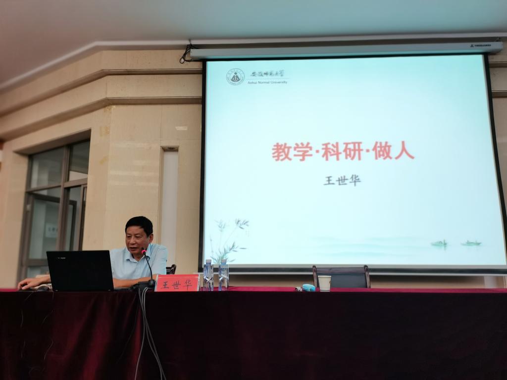 开班仪式结束后,王世华教授以“教学·科研·做人”为主题,为培训班作了生动的师德师风专题讲座。王教授结合自身的工作经历,向参训教师传授了教学科研、做人做事等方面的经验。他指出,上好课是教师的本职,教师要不断提升自身的知识储备,要着重锻炼语言表达能力,打造兼具理论价值和实践功能的金课。针对科学研究,王教授勉励参训教师要认识到科研的重要性,要确定好科研方向,要坚持申报项目和写作论文,持之以恒,努力让自己的研究成果做到“选题新、资料新、方法新、观点新”,同时,他告诫新进教师一定要遵守论文的学术规范,恪守职业道德。王教授强调,新进教师要将做人放在第一位,要做到“尊重别人、孝顺父母、与人为善、懂得感恩”,做一个守时守信的人。王教授的讲座立意深远而语重心长,令人受益匪浅。讲座结束后,培训班班主任谢康进行了总结,并介绍了培训后续安排及考核的要求。
